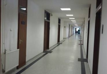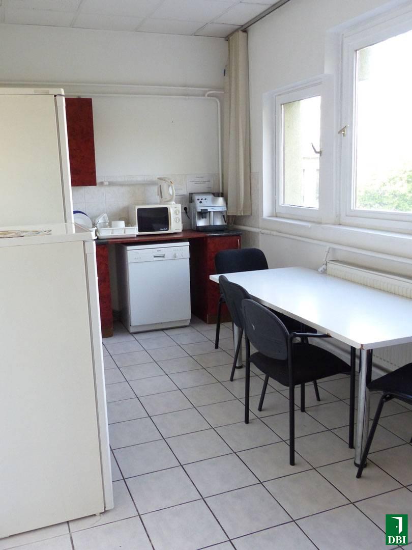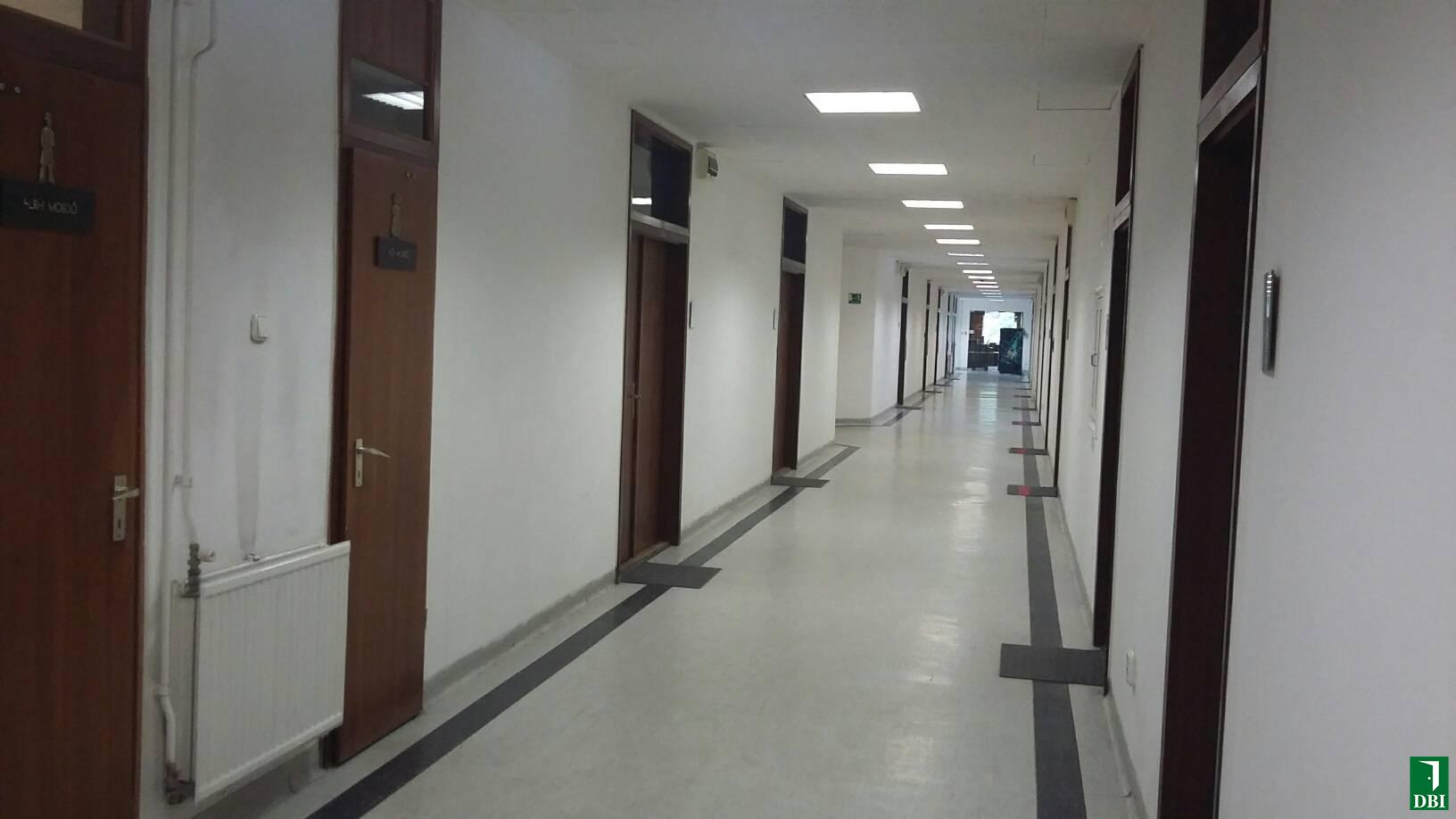 A kiadásra kínált iroda nagysága 31,36 nm, laminált padlós, bútorozatlan, szalagfüggönnyel. Az emeleten két mosdóblokk és egy közös használatú felszerelt konyha található. (Az alaprajzon a 116 sz. helyiség)