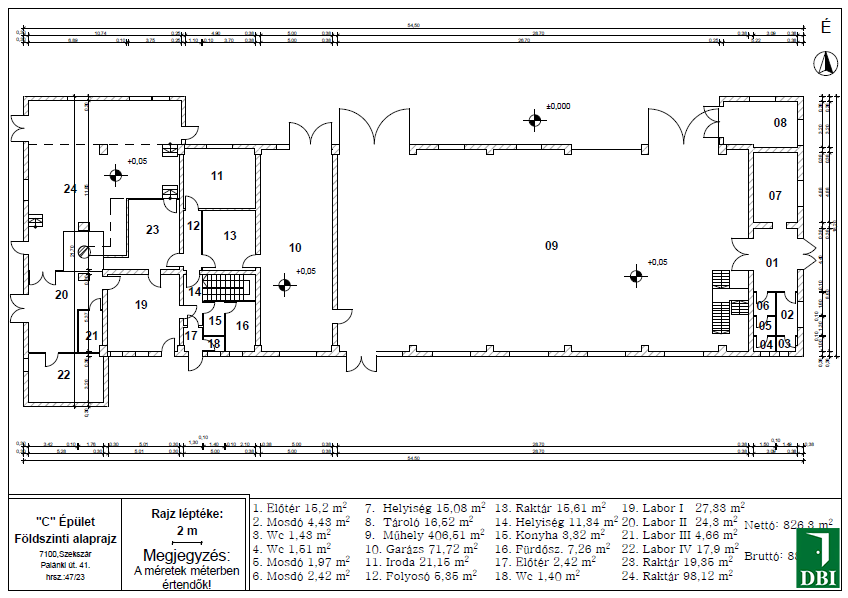 Szekszárdon - az M9-es és M6-os autópálya közelében - a Palánki út 41. szám alatti telephelyen lévő téglaépületen belül kiadó egy 465,04 m2 nagyságú, téglafallal leválasztott, külön bejáratú, nehézgépek szerelésére, tárolására alkalmas csarnokhelyiség. 13,84 m2-es iroda és 8,45 m2-es szociális helyiség a raktárral együtt kiadó. (Alaprajzon 1-9. sz. helyiségek)